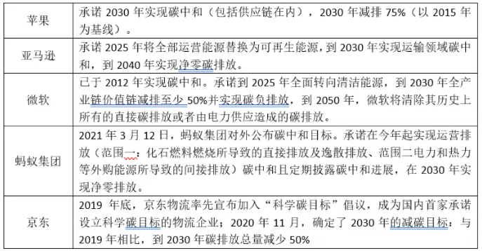 近年來,各大國內(nèi)電商企業(yè)也開始積極應對低碳轉(zhuǎn)型發(fā)展趨勢,在綠色物流、綠色辦公和綠色供應鏈等方面采取多項措施,響應國家政策,積極研發(fā)創(chuàng)新。