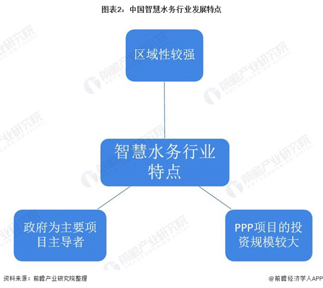 我國智慧水務(wù)行業(yè)發(fā)展特點主要包括:區(qū)域性較強,大多數(shù)智慧水務(wù)項目的開展由政府主導(dǎo),在智慧水務(wù)項目中,PPP項目的投資規(guī)模較大。