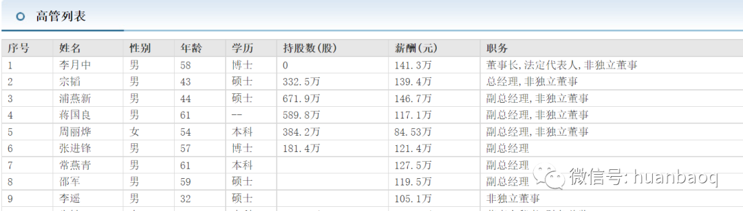 相對于董事長和總經(jīng)理,副總經(jīng)理相當(dāng)于公司三把手,數(shù)量也更多??v觀每家環(huán)保上市企業(yè),副總經(jīng)理的數(shù)量雖然不盡相同,但少的也有2-3個(gè),多的則有5-6個(gè)。為了方便統(tǒng)計(jì)和比較,我們僅從各家企業(yè)中挑選報(bào)酬相對較高的一位作為代表。在我們統(tǒng)計(jì)的79位上市環(huán)企副總經(jīng)理名單中,年薪百萬以上的有25位,約占32%;年薪50萬元-100萬元之間的有41位,占比52%,約占半數(shù);年薪不足50萬元的則要13位,約占16%(如圖七所示)。這其中,盈峰環(huán)境副總裁陳培亮遙遙領(lǐng)先,年收入625萬元;排名第二的還是格林美,其副總王敏去年薪酬312萬元,她的另外一個(gè)身份則是格林美董事長許開華的妻子。在圖7“副總經(jīng)理薪酬TOP20榜單”中,排名靠前的企業(yè)絕大多數(shù)也都是業(yè)績表現(xiàn)好,坐落于北上廣深的大型環(huán)保上市企業(yè),如中持股份、格林美、首創(chuàng)股份、綠色動力、清新環(huán)境等。圖七:上市環(huán)企副總經(jīng)理薪酬TOP20榜單這些企業(yè)的高管不僅百萬年薪,很多還都大量持有公司股票,從幾十萬股到幾百萬股不等。以中持股份原副總朱向東為例(最近剛剛接替邵凱成為公司總經(jīng)理),按照6月10日中持股份9.93元/股的收盤價(jià),他持有132萬股計(jì)算,他目前已是擁有1311萬元的身價(jià)了,這還不包括每年155.4萬元的年薪(如圖八所示)。圖八:中持股份高管團(tuán)隊(duì)收入(數(shù)據(jù)/東方財(cái)富網(wǎng))除了中持,格林美的七個(gè)副總經(jīng)理也幾乎清一色年入百萬,并大量持有公司股票(如圖九所示)。圖九:格林美高管團(tuán)隊(duì)收入(數(shù)據(jù)/東方財(cái)富網(wǎng))清新環(huán)境也不錯(cuò),總裁和四個(gè)副總的年薪,都比董事長鄒艾艾要高(如圖十所示)。圖十:清新環(huán)境高管團(tuán)隊(duì)收入(數(shù)據(jù)/東方財(cái)富網(wǎng))還有首創(chuàng)股份和綠色動力,高管團(tuán)隊(duì)年薪100萬-300萬不等,待遇也要高于大多數(shù)上市環(huán)企(如圖十一、圖十二所示)。圖十一:首創(chuàng)股份高管團(tuán)隊(duì)收入(數(shù)據(jù)/東方財(cái)富網(wǎng))圖十二:綠色動力高管團(tuán)隊(duì)收入(數(shù)據(jù)/東方財(cái)富網(wǎng))在眾多環(huán)保企業(yè)中,有一家企業(yè)顯得比較“特別”,它既不坐落于北上廣深等一線大都市,去年的營收也不是環(huán)保行業(yè)排名前20強(qiáng),但對高管團(tuán)隊(duì)卻非常“舍得”,又是年薪百萬,又是持股百萬,這家企業(yè)就是崛起于常州的維爾利集團(tuán)(如圖十三所示)。圖十三:維爾利集團(tuán)高管團(tuán)隊(duì)收入(數(shù)據(jù)/東方財(cái)富網(wǎng))從圖中可以看出,維爾利高管的年薪基本都在“百萬級”左右,很多人持股也都在幾百萬股以上。這樣的利益分配制度,維爾利的高管不努力,公司的業(yè)績不優(yōu)秀都太不可能了。當(dāng)然,高收入、高待遇也不只是少數(shù)環(huán)保企業(yè)的專利,絕大多數(shù)環(huán)保上市企業(yè)的高管團(tuán)隊(duì),包括總經(jīng)理和副總經(jīng)理級別的,年薪都位于50萬元-100萬元之間,可能還會有股票、分紅等隱性福利。眾多環(huán)保企業(yè)中,還有2家企業(yè)比較“另類”,那就是中國天楹和城發(fā)環(huán)境。在圖十四“副總經(jīng)理年薪收入后10名榜單”中,可以看到這兩家企業(yè)的副總年薪偏少。圖十四:副總經(jīng)理年薪收入后10名的名單中國天楹,創(chuàng)始人是嚴(yán)圣軍、茅洪菊夫婦,除總裁曹徳標(biāo)年薪36萬元外,其余副總裁一律年薪25萬元,月工資2.1萬(如圖十五所示)。圖十五:中國天楹高管團(tuán)隊(duì)收入(數(shù)據(jù)/東方財(cái)富網(wǎng))城發(fā)環(huán)境,剛剛花了12.6億元并購啟迪環(huán)境資產(chǎn),除總經(jīng)理年入100萬元以外,其余三位副總年薪都低至2.4萬元,月工資只有2000元,著實(shí)令人費(fèi)解(如圖十六所示)。圖十六:城發(fā)環(huán)境高管團(tuán)隊(duì)收入(數(shù)據(jù)/東方財(cái)富網(wǎng))這里面的原因,外部人可能很難知道,或許是有其特殊的隱情吧。全部看下來,大家對于環(huán)保行業(yè)高管的收入應(yīng)該有一個(gè)大概的了解了。