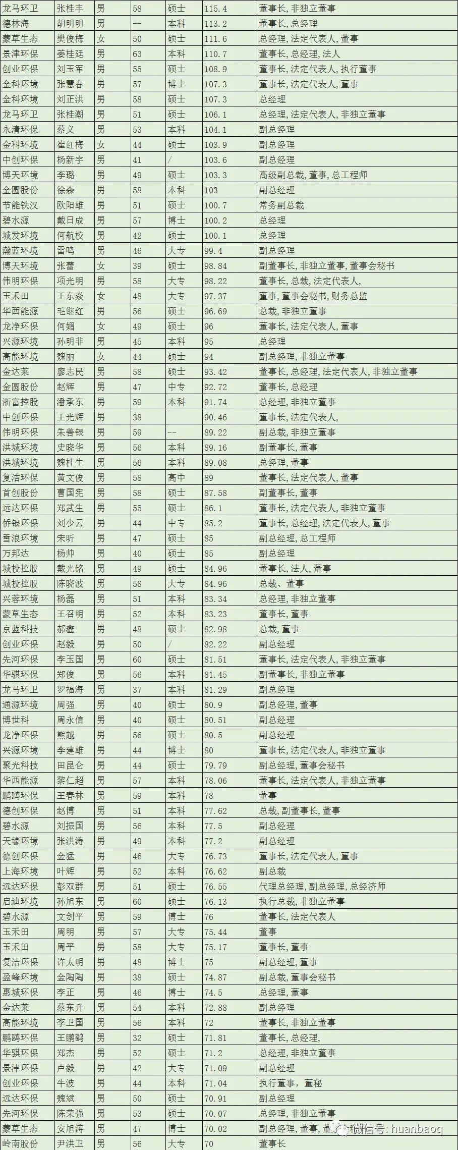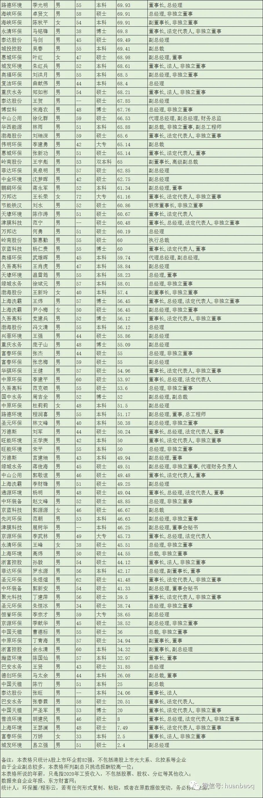 附A股82家環(huán)保企業(yè)高管薪酬排行表:
