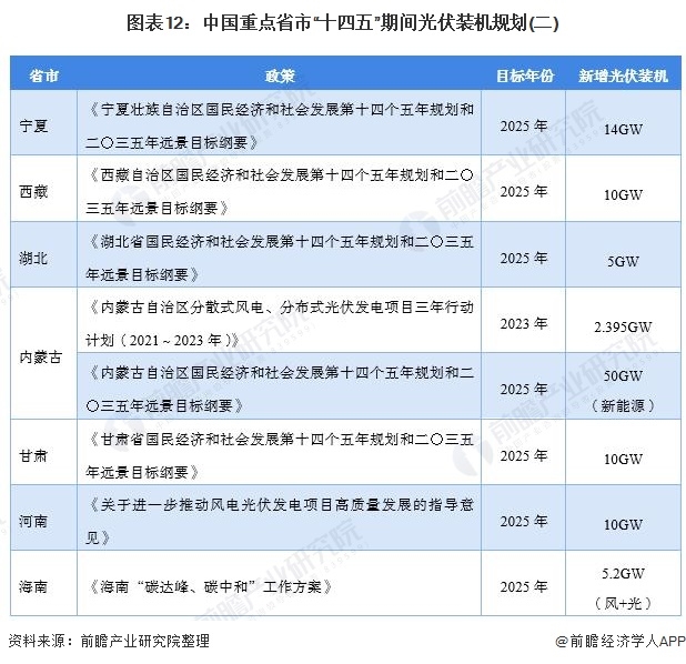 首先,在光伏產(chǎn)業(yè)發(fā)展規(guī)劃方面,由于2021年是“十四五”的開局之年,各省的能源、新能源規(guī)劃紛紛出臺,多地也出臺了光伏能源發(fā)展目標(biāo):