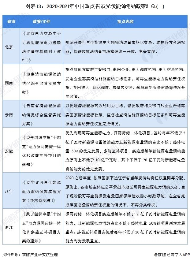 當(dāng)前,中央高度重視碳中和工作,規(guī)劃大力發(fā)展新能源電力。2021年是可再生能源電力消納保障機(jī)制的實(shí)行之年,對應(yīng)著國家政策的出臺,2020年底-2021年上半年,我國大部分省市都出臺了光伏等新能源電力消納相關(guān)政策,從省市的政策可以看出,光伏能源消納監(jiān)管仍然是重中之重,落實(shí)清潔能源消納目標(biāo)任務(wù)是各省2021年的主要目標(biāo)。