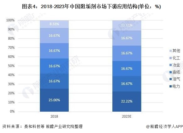 阻垢劑的應(yīng)用大大提高了循環(huán)水容納微溶鹽類的能力,不錯(cuò)的溶解性及穩(wěn)定性幫助凈化了水資源,廣泛的應(yīng)用于各類水處理設(shè)備當(dāng)中。在我國,阻垢劑主要應(yīng)用于電力、造紙等工業(yè)的水治理中,其市場規(guī)模呈現(xiàn)增長趨勢(shì),未來隨著工業(yè)循環(huán)水的處理需求增加,市場有望繼續(xù)增長。