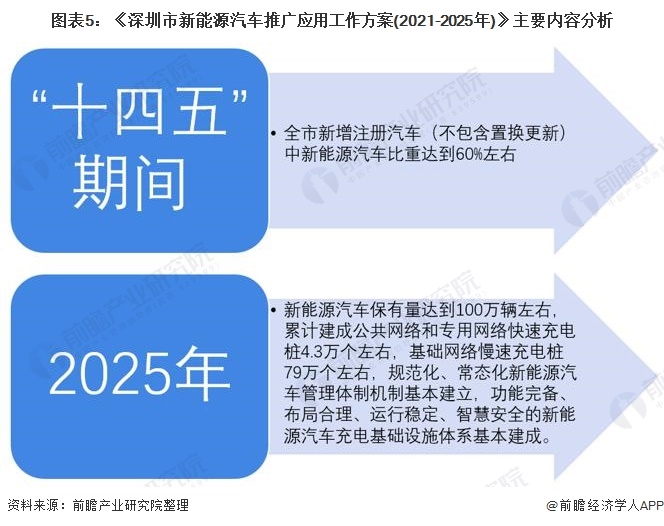 為推動新能源汽車的發(fā)展,深圳市做出了明晰的發(fā)展規(guī)劃。2021年3月頒布《深圳市新能源汽車推廣應用工作方案(2021-2025年)》,政策表明“十四五”期間,全市新增注冊汽車(不包含置換更新)中新能源汽車比重達到60%左右,至2025年,新能源汽車保有量達到100萬輛左右,累計建成公共網(wǎng)絡和專用網(wǎng)絡快速充電樁4.3萬個左右,基礎網(wǎng)絡慢速充電樁79萬個左右,規(guī)范化、常態(tài)化新能源汽車管理體制機制基本建立,功能完備、布局合理、運行穩(wěn)定、智慧安全的新能源汽車充電基礎設施體系基本建成。