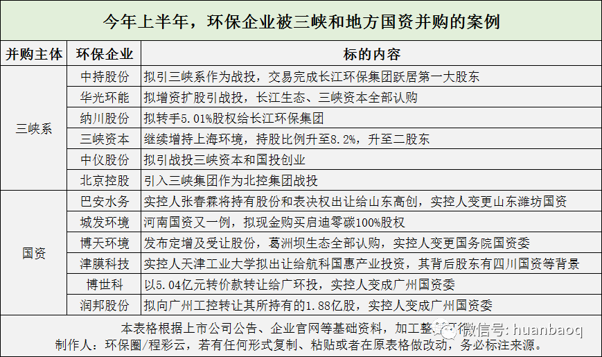 難道國資進(jìn)入,發(fā)生“混改”就一定會意味著原有民營企業(yè)經(jīng)營管理團(tuán)隊(duì)的重大調(diào)整,意味著新的企業(yè)會遭遇對國企嚴(yán)格管理制度的不適應(yīng),進(jìn)而導(dǎo)致企業(yè)喪失市場活力么?現(xiàn)在看來,中持股份與長江生態(tài)環(huán)保集團(tuán)的“無實(shí)控人”混改模式有可能給出不一樣的答案。但至于哪種模式更科學(xué),效果更好,目前還難以回答,為時(shí)尚早?;蛟S再過3年5年,時(shí)間會給出答案。遙想6年前,那時(shí)的環(huán)保行業(yè)非常熱鬧,不僅惹得圈內(nèi)環(huán)保企業(yè)一路“買買買”向構(gòu)建大環(huán)保平臺邁進(jìn),更有諸多圈外非環(huán)保企業(yè)跨界而來,被媒體戲稱為“野蠻人入侵”。2015年,是傳統(tǒng)行業(yè)跨界環(huán)保的元年,在看到環(huán)境產(chǎn)業(yè)成長紅利后,他們紛紛大手筆跨界,落子環(huán)境產(chǎn)業(yè)。據(jù)媒體不完全統(tǒng)計(jì),當(dāng)年環(huán)保領(lǐng)域至少新添了40張新面孔,其中不乏葛洲壩集團(tuán)、中國石化、中信集團(tuán)、中國中車、中國中鐵這樣的大型國企。2016年則是跨界布局環(huán)境產(chǎn)業(yè)的爆發(fā)期,在這一年間,許多實(shí)力強(qiáng)勁的企業(yè)紛紛跨界環(huán)保,業(yè)內(nèi)一片嘩然,有人認(rèn)為他們進(jìn)入是好事,給環(huán)保行業(yè)帶來大量資金,也有人認(rèn)為他們會進(jìn)一步擠壓環(huán)保企業(yè)利潤,未來廝殺會越演愈烈。還有人認(rèn)為,入場者眾,出局者亦增多,未來五年才是環(huán)保并購的驗(yàn)證期,那些盲目入場、沒有技術(shù)和資本能力的企業(yè)將在“大洗牌”中出局。果然,狂歡只是暫時(shí)的,而危險(xiǎn)則隨之而來。到了2018年,跨界環(huán)境產(chǎn)業(yè)的并購僅有6起,外界資本對環(huán)境投資愈發(fā)理性和謹(jǐn)慎,絕大多數(shù)并購都是環(huán)保同行之間的兼并,橫向產(chǎn)業(yè)鏈下上游并購多發(fā)。從標(biāo)的來看,相對2015年水務(wù)和流域治理,2018年危廢和環(huán)衛(wèi)則成為資本爭寵的標(biāo)的。到了今年上半年,在39起并購案例中,真正意義上的跨界并購僅有3起,一個(gè)是從事稀土深加工的內(nèi)蒙企業(yè)北方稀土以8.43億元價(jià)格,收購了包鋼集團(tuán)旗下的節(jié)能環(huán)保公司全部股權(quán),謀求轉(zhuǎn)型;另一個(gè)是生產(chǎn)建筑板材企業(yè)揚(yáng)子新材以自有資金收購濱南股權(quán)51%股份,切入環(huán)衛(wèi),瞄準(zhǔn)城市公共服務(wù)。還有一個(gè),就是開篇提到的主業(yè)做生物殺蟲劑的錢江生化,并購云南水務(wù)旗下的污水處理廠運(yùn)營權(quán)。第四,海外并購降至冰點(diǎn),出海淘金熱已褪。隨著外界資本跨界環(huán)保熱情減退,近兩年海外并購也在逐年降溫,降至冰點(diǎn)以下。前幾年,在國家“一帶一路”戰(zhàn)略下,環(huán)保頭部企業(yè)為了快速補(bǔ)齊技術(shù)、服務(wù)運(yùn)營的短板,曾經(jīng)掀起一個(gè)出?!疤越稹钡臒岢?。北控、首創(chuàng)、中國天楹、錦江環(huán)境、云南水務(wù)、國禎環(huán)保、永清環(huán)保、格林美等優(yōu)秀環(huán)保上市企業(yè),都曾出于各種戰(zhàn)略考慮,尋求海外并購。其中北控曾在2016年斥資14.38億歐元(約125.48億港元),收購德國最大垃圾發(fā)電EEW全部股權(quán),成為中國對德最大并購交易。然而近兩年來,國內(nèi)環(huán)保龍頭企業(yè)則鮮有海外并購,即使有,也沒能掀起太大的浪花。據(jù)筆者觀察,今年上半年39起并購案例中,竟然沒有一例是龍頭環(huán)保企業(yè)出海并購國際友商,反倒是中國天楹拋售海外資產(chǎn),兩大法企威立雅和蘇伊士合并。從并購就能看出,兜兜轉(zhuǎn)轉(zhuǎn)不過幾年間,環(huán)保行業(yè)就已經(jīng)走了一波人,來了一撥人。行業(yè)格局正在發(fā)生巨變,一個(gè)新的時(shí)代已經(jīng)拉開大幕。附:上半年我國環(huán)保行業(yè)收并購案例詳情: