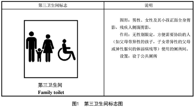 按照標(biāo)準(zhǔn)北京市公共廁所建設(shè)規(guī)范 DB11/T190-2016,第三衛(wèi)生間標(biāo)志如上圖。