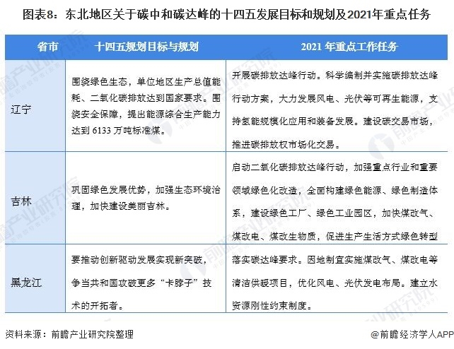 結(jié)合區(qū)域發(fā)展特性,東北地區(qū)各省十四五規(guī)劃目標和2021年重點工作任務中主要以發(fā)展能源替代和建設綠色工業(yè)園區(qū)為主。