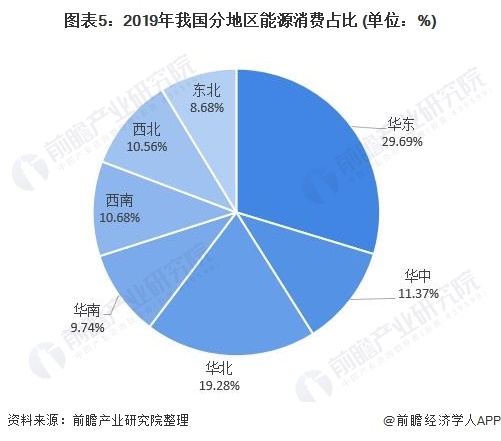 但經(jīng)濟發(fā)達的背后意味著高占比的能源消耗,根據(jù)2020年國家能源統(tǒng)計年鑒所披露的相關信息,我國2019年華東地區(qū)總能源消費占比達29.69%,是我國七大地區(qū)中能源消費量最多的地區(qū)。