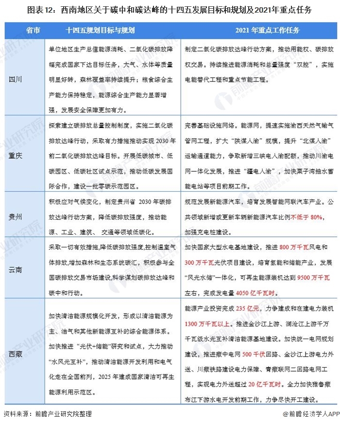 西南地區(qū)包括重慶市、四川省、貴州省、云南省、西藏自治區(qū)共五個省市區(qū)。西南地區(qū)位處于長江中上游,覆蓋云貴高原和青藏高原南部,在發(fā)展水力發(fā)電和光伏發(fā)電以及風力發(fā)電有較好的自然條件。在西南地區(qū)各省政府在十四五規(guī)劃目標和2021年重點工作任務也主要圍繞著水力發(fā)電和風電等新能源發(fā)電項目為主。其中云南和西藏等省份更是在2021年工作任務中直接提出了相關項目建設要求和目標。