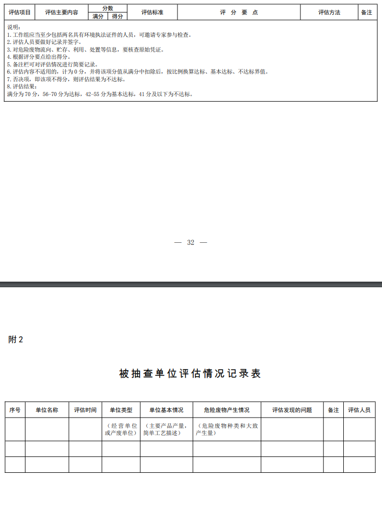 八、附件:評估情況記錄表(附 2),不達標和基本達標企業(yè)規(guī)范化環(huán)境管理評估結果匯總表,不達標企業(yè)存在的問題及其處理情況等。