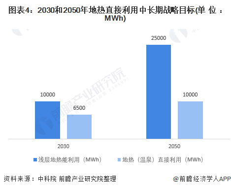 從地?zé)嶂苯永梅矫鎭?lái)說(shuō),根據(jù)中科院2012年發(fā)布的《中國(guó)地?zé)豳Y源中長(zhǎng)期戰(zhàn)略規(guī)劃》顯示,在地?zé)嶂苯永梅矫?,?030年我國(guó)淺層地?zé)崮芾脤⑦_(dá)10000MWh,地?zé)?溫泉)直接利用6500MWh;到2050年我國(guó)淺層地?zé)崮芾脤⑦_(dá)25000MWh,地?zé)?溫泉)直接利用10000MWh,地?zé)崮苤苯永每臻g巨大。