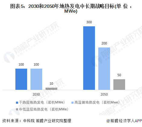 從地?zé)岚l(fā)電方面來(lái)說(shuō),到2020年我國(guó)干熱巖地?zé)岚l(fā)電裝機(jī)容量將達(dá)25MWe,到2030年我國(guó)干熱巖地?zé)岚l(fā)電裝機(jī)容量將達(dá)100MWe,到2050年我國(guó)干熱巖地?zé)岚l(fā)電裝機(jī)容量將達(dá)300MWe。