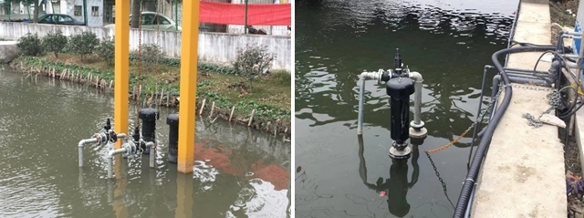 (新鎮(zhèn)中心河與綠地景觀河等春鼎TSW型沉水式風機使用現(xiàn)場)