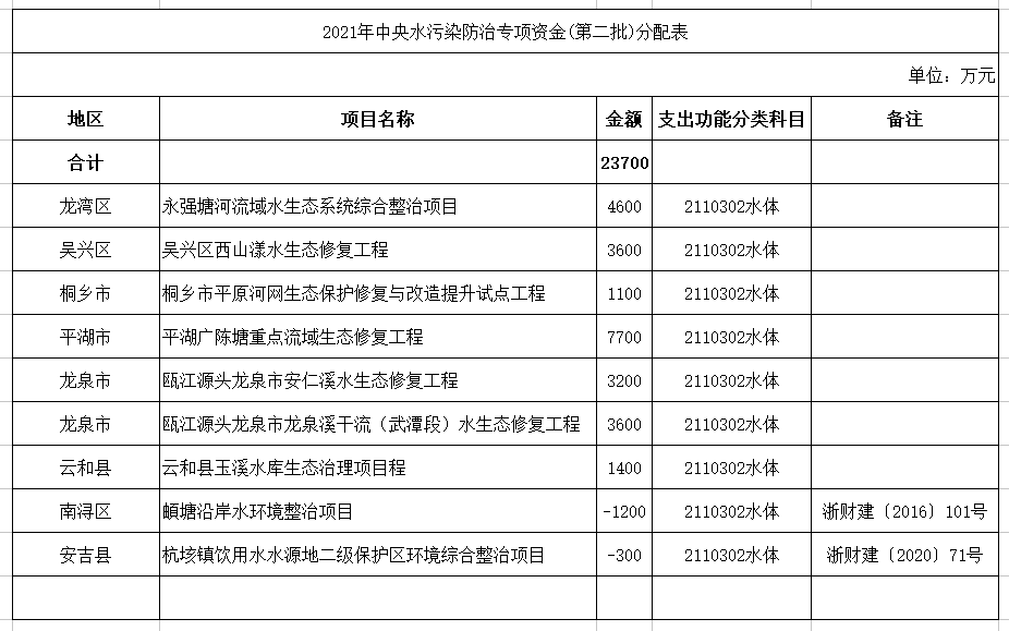 浙江省財政廳 浙江省生態(tài)環(huán)境廳關(guān)于下達(dá)2021年大氣污染防治、水污染防治資金(第二批)的通知