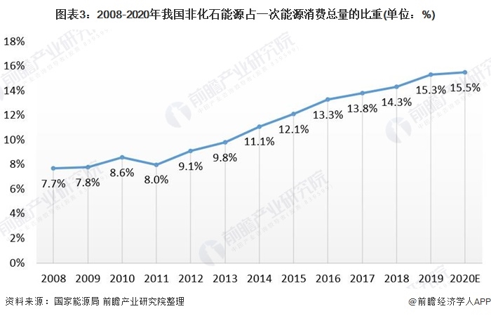 從我國(guó)對(duì)能源的依存情況來(lái)看,化石能源仍是主要消費(fèi)對(duì)象。統(tǒng)計(jì)數(shù)據(jù)顯示,2008-2013年,非化石能源(水電、風(fēng)電、太陽(yáng)能、生物質(zhì)能等)占一次能源消費(fèi)總量的比重均低于10%,之后該比重持續(xù)上升,至2019年該比重達(dá)到15.3%。未來(lái),當(dāng)經(jīng)濟(jì)增速逐漸提高時(shí),化石能源的消費(fèi)還會(huì)大幅增長(zhǎng),非化石能源的占比可能還會(huì)面臨下降的風(fēng)險(xiǎn)。