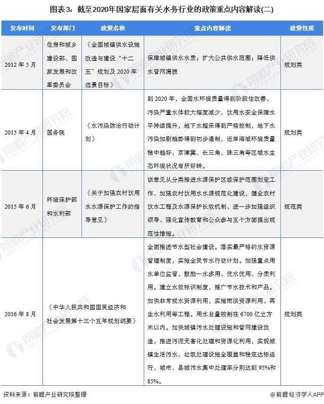 圖表2:截至2020年國(guó)家層面有關(guān)水務(wù)行業(yè)的政策重點(diǎn)內(nèi)容解讀(一)
