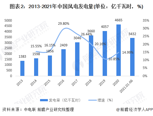 從風(fēng)能發(fā)電的裝機(jī)容量來看,2013-2020年,我國風(fēng)力發(fā)電并網(wǎng)裝機(jī)容量呈逐漸上升的趨勢。從風(fēng)能發(fā)電量來看,2013-2020年,我國風(fēng)電發(fā)電量呈逐漸上升的趨勢,增速呈波動變化的趨勢。從行業(yè)的發(fā)展增速來看,風(fēng)能發(fā)電行業(yè)的發(fā)展勢頭較好,整體規(guī)模呈現(xiàn)逐年上升的態(tài)勢。