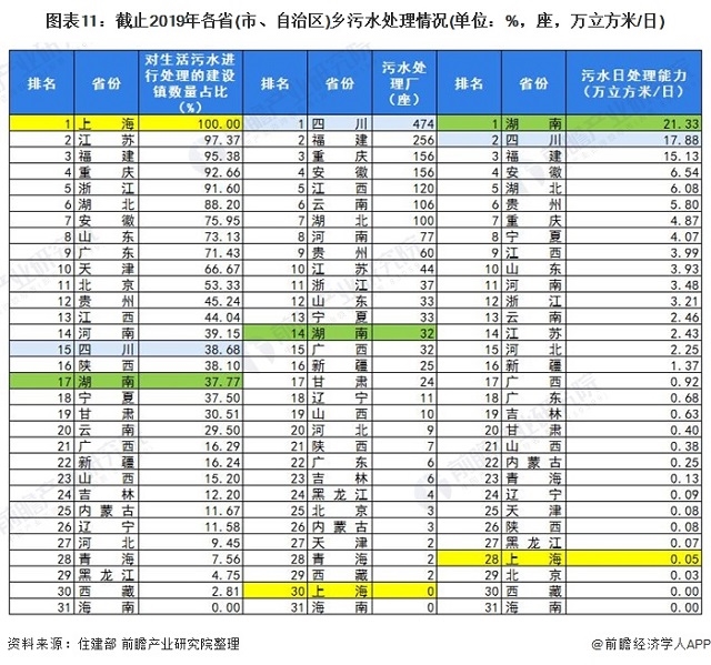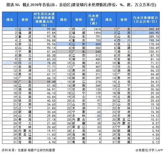 ——四川農(nóng)村污水處理廠數(shù)量最多,海南并未有鄉(xiāng)進行生活污水處理