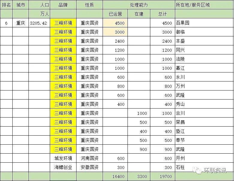 重慶的規(guī)劃根本不像個市,而像個省。重慶的區(qū)應(yīng)該是全世界最多的吧,邊遠(yuǎn)落后的縣都改區(qū)了,山溝溝的城區(qū)。重慶國資委旗下有個垃圾發(fā)電巨頭三峰環(huán)境,A股上市公司,在重慶基本壟斷了。重慶的二萬噸產(chǎn)能它占了一萬九,主城區(qū)全部,各縣城占多數(shù)。所以重慶近幾年對外來者是相關(guān)封閉的。重慶也是以小項目為主,小縣城太多了。城區(qū)有4500噸的百果園和3000噸的御臨項目為最大項目,縣城項目均小于1000噸。由于項目多且分散,超大爐排運(yùn)用不多。