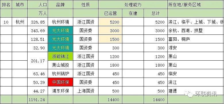 杭州的垃圾發(fā)電廠小規(guī)模的偏多,臨安、淳安、濱江、建德等項目規(guī)模都小于500噸。最大的規(guī)模是杭州環(huán)境的臨江項目,其次是光大環(huán)境的九峰項目。蕭山的兩個項目還是流化床爐,遲早要淘汰,桐廬的項目因盛運(yùn)環(huán)保破產(chǎn)也停產(chǎn)了。像中節(jié)能的濱江和杭鍋的臨安項目也是遲早要淘汰的落后產(chǎn)能。目前光大環(huán)境在杭州的項目是最多的,其中有6臺750噸的爐排爐。