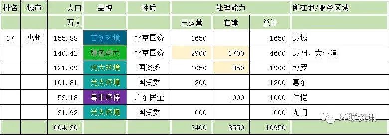 惠州是承接深圳、東莞溢出產(chǎn)業(yè)的先鋒,最近兩年惠州的經(jīng)濟(jì)發(fā)展迅速,人口也是急速增加。其中博羅和惠東都成為百萬人口縣城?;葜葑畲蟮睦l(fā)電廠是惠陽環(huán)境園,已運(yùn)營+在建產(chǎn)能4600噸/天。但產(chǎn)能利用率不高,以后要協(xié)調(diào)污泥、一般工業(yè)固廢進(jìn)入環(huán)境園處理。惠陽項目也是綠色動力最大的項目。光大環(huán)境在惠州有三個項目,效率不錯,惠東還計劃建設(shè)1500噸/天的三期項目。首創(chuàng)環(huán)境的惠城項目在惠州并不突出,位置也比較偏遠(yuǎn)。惠州的項目產(chǎn)能有已過剩,擴(kuò)建的空間不大。