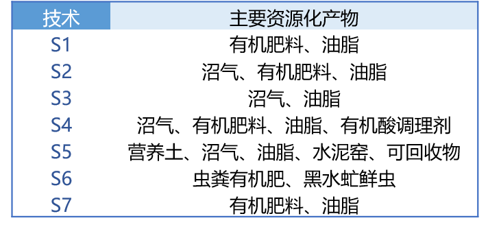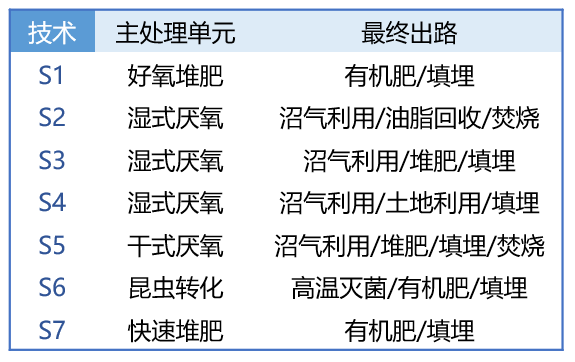 本報(bào)告中選擇的七種典型廚余垃圾處理方案包括: