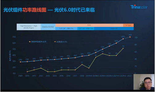 根據(jù)光伏組件功率路線圖顯示,光伏6.0時代已來臨。天合光能主要是在210mm 硅片、無損切割技術(shù)、低電壓設(shè)計(jì)、高密度封裝、多分片設(shè)計(jì)、MBB等幾大方面進(jìn)行創(chuàng)新。