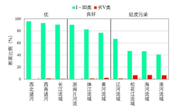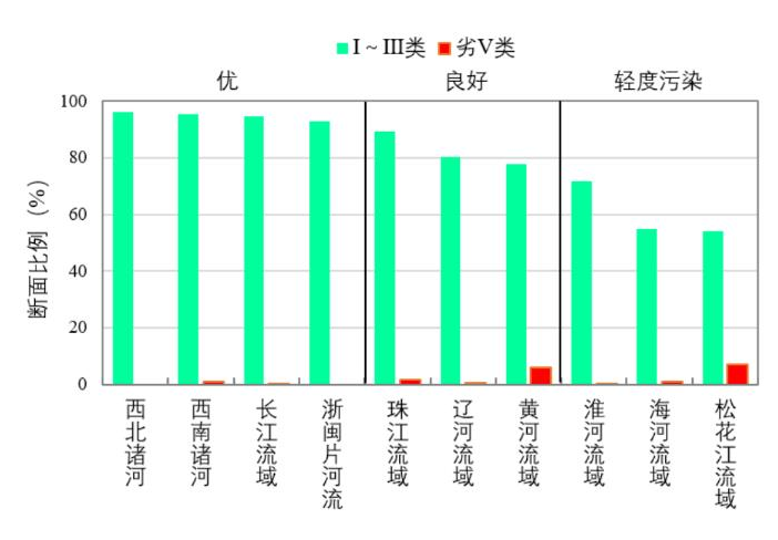 7月,長江、黃河、珠江、松花江、淮河、海河、遼河等七大流域及西北諸河、西南諸河和浙閩片河流水質(zhì)優(yōu)良(Ⅰ~Ⅲ類)斷面比例為74.7%,同比下降1.7個百分點(diǎn);劣Ⅴ類斷面比例為2.3%,同比下降1.2個百分點(diǎn)。主要污染指標(biāo)為高錳酸鹽指數(shù)、化學(xué)需氧量和總磷。其中,西北和西南諸河、長江流域水質(zhì)為優(yōu);浙閩片河流、珠江和黃河流域水質(zhì)良好;遼河、松花江、海河和淮河流域?yàn)檩p度污染。