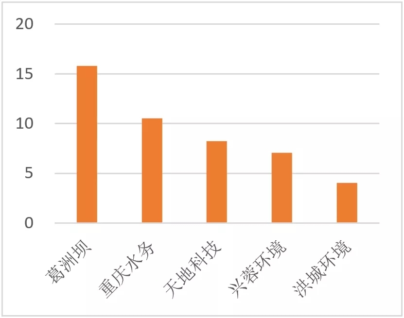 上半年水務(wù)領(lǐng)域環(huán)保營收TOP5(單位:億元)