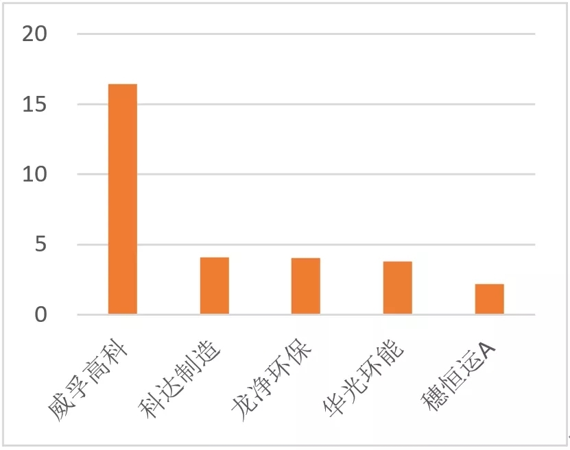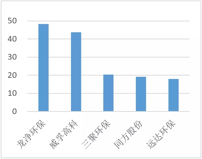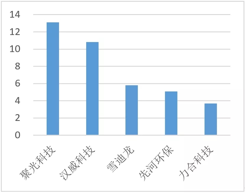 上半年大氣領(lǐng)域環(huán)保營收TOP5(單位:億元)