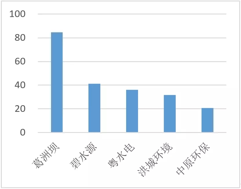 上半年水務(wù)領(lǐng)域凈利潤TOP5(單位:億元)