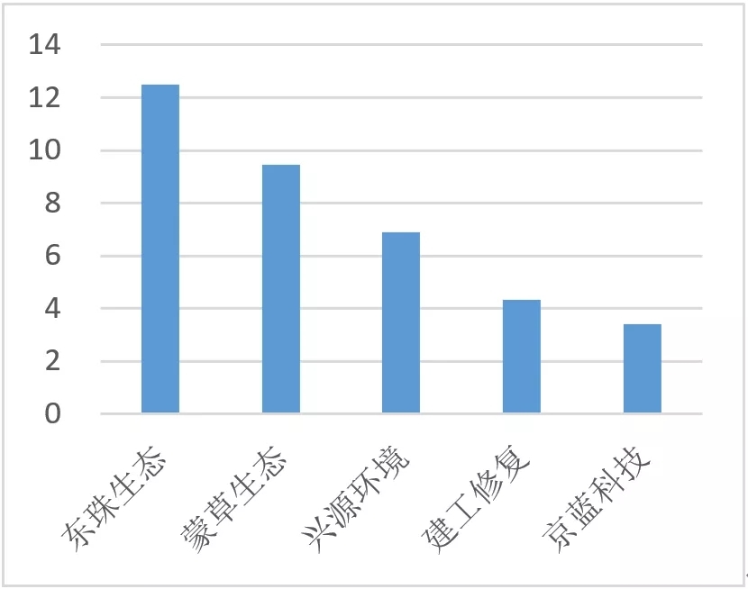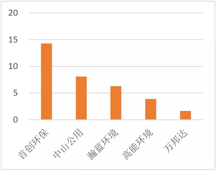 上半年環(huán)境修復(fù)領(lǐng)域凈利潤TOP5(單位:億元)