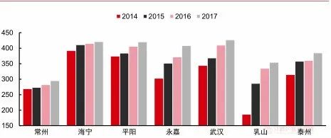 綠色動力公司已投運(yùn)項目的噸垃圾發(fā)電量水平均呈現(xiàn)出穩(wěn)步提升態(tài)勢,自2014年平均311度/噸已經(jīng)提升至2017年的387度/千瓦時,上升幅度為24.4%。