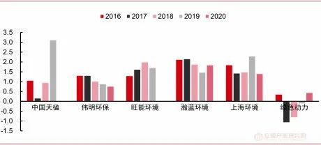 垃圾發(fā)電行業(yè)ROE近年來呈現(xiàn)穩(wěn)步上升趨勢,未來仍有較大提升空間。從垃圾發(fā)電行業(yè)ROE發(fā)展趨勢來看,垃圾發(fā)電行業(yè)ROE已從2015年的9.9%擴(kuò)至2019年的12.6%??紤]到行業(yè)運(yùn)營提效的中長期趨勢,同時業(yè)內(nèi)公司普遍有大量項目正在從在建工程向運(yùn)營階段轉(zhuǎn)化,也有助提升公司的資產(chǎn)周轉(zhuǎn)率,預(yù)計國內(nèi)垃圾發(fā)電行業(yè)ROE未來仍有較大的提升空間。