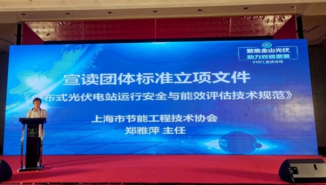 上海市節(jié)能工程技術(shù)協(xié)會辦公室主任鄭雅萍宣讀團(tuán)體標(biāo)準(zhǔn)《分布式光伏電站運(yùn)行安全與能效評估技術(shù)規(guī)范》工作組立項文件。