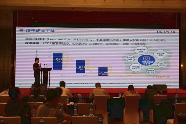 上海晶澳太陽能科技有限公司技術(shù)中心主任張軍作《高功率高效組件技術(shù)及發(fā)展趨勢》的主旨演講。