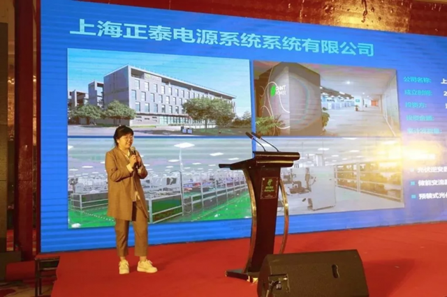 上海正泰電源系統(tǒng)有限公司經(jīng)理王亞倩作《分布式整縣推廣解決方案(戶用&工商業(yè))》的主旨演講。