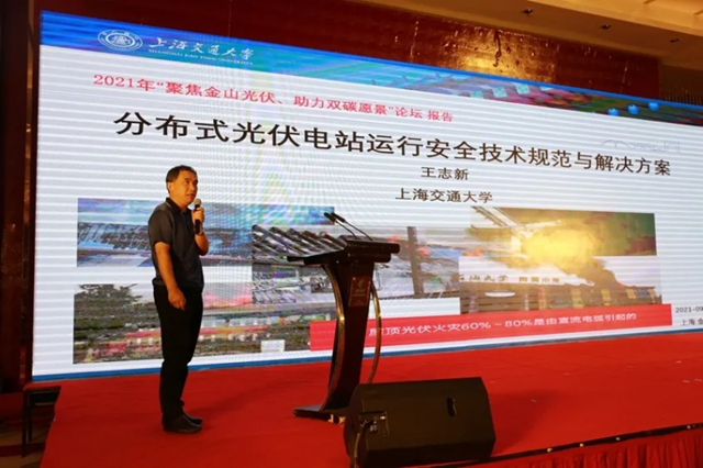 上海交通大學(xué)教授、博士生導(dǎo)師王志新作題為《分布式光伏電站運(yùn)行安全技術(shù)規(guī)范與解決方案》的主旨演講。