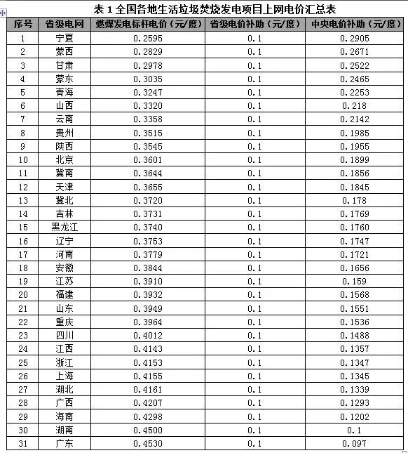 鑒于全國各地區(qū)生活垃圾焚燒發(fā)電項(xiàng)目上網(wǎng)電價(jià)現(xiàn)狀,分述如下: