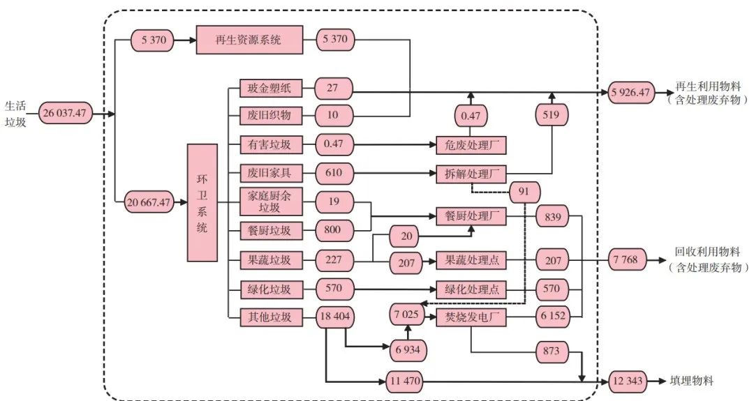 圖1 深圳市生活垃圾分類系統(tǒng)的物質(zhì)流分析框架