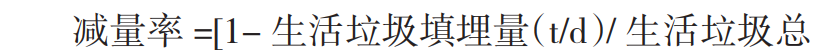 2)減量率:當生活垃圾產(chǎn)生后,其減量化主要是指通過分類收集、分類處理等方式減少最終的填埋處置量。