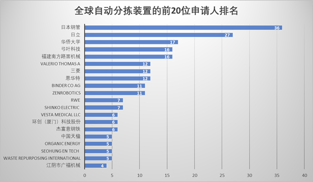 圖2:全球垃圾分揀裝置收集技術(shù)前20名申請人排名