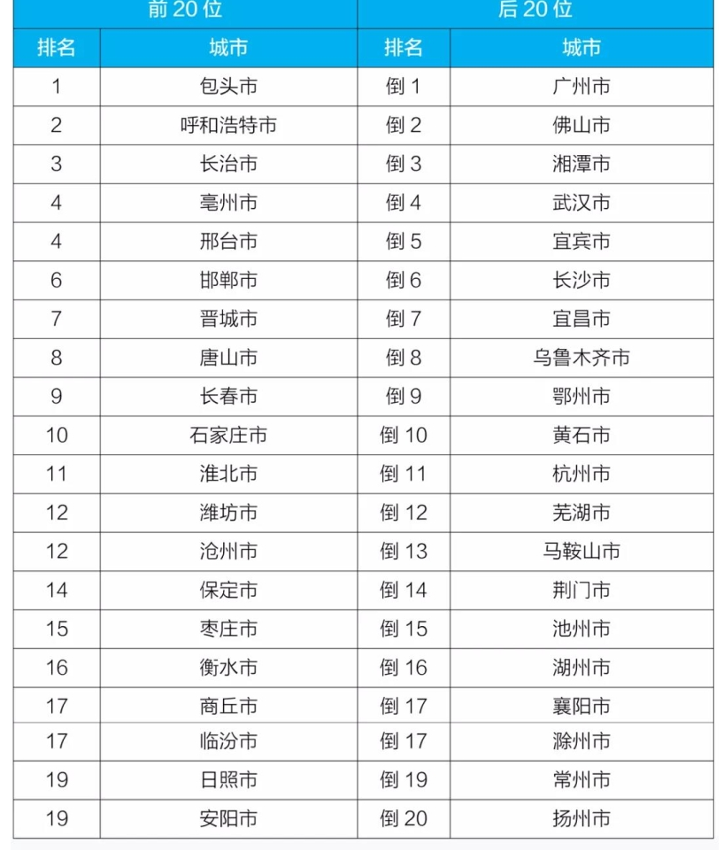 9月168個(gè)重點(diǎn)城市空氣質(zhì)量排名前20位和后20位城市名單