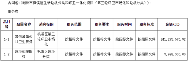 潮州市楓溪區(qū)生活垃圾分類和環(huán)衛(wèi)一體化項目(第三輪環(huán)衛(wèi)市場化和垃圾分類)