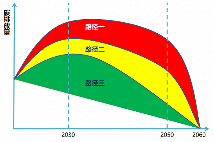 選項(xiàng)二:若美國釋放善意,前述的國際環(huán)境徹底改善,中國可以8-10%碳排放增長率,到2030年達(dá)峰,再緩慢下降,待2050年“碳中和”技術(shù)經(jīng)濟(jì)可行后,開始快速下降?!半p控”寬而執(zhí)行。