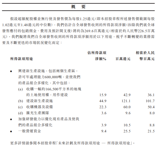 招股書顯示,鴻承環(huán)??萍即舜文假Y將新建兩個(gè)年處理能力達(dá)60萬(wàn)噸的生產(chǎn)區(qū),并擴(kuò)充生產(chǎn)團(tuán)隊(duì),同時(shí)構(gòu)建多元化產(chǎn)品組合,加強(qiáng)研發(fā)能力和優(yōu)化現(xiàn)有產(chǎn)品,以及補(bǔ)充一般運(yùn)營(yíng)資金。