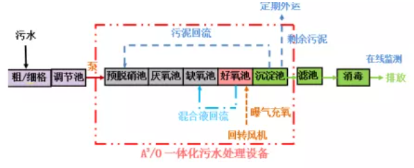 規(guī)模較小的鄉(xiāng)鎮(zhèn)污水處理廠(遠期規(guī)模≤1000噸),以一體化設備為主,一體化設備采用A³O-MBBR工藝或MBR水處理工藝。