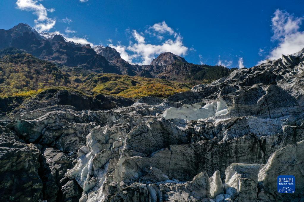 10月28日拍攝的明永冰川一景(無人機(jī)照片)。