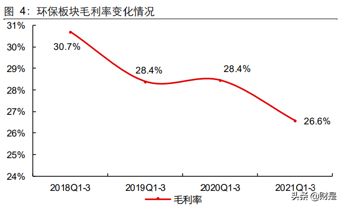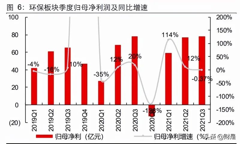 大氣:-6.8%,工程業(yè)務(wù)為主,受原材料價格上漲影響;頭部公司龍凈環(huán)保表現(xiàn)相對穩(wěn)健,近兩年復(fù)合增速為11.5%;奧福環(huán)保表現(xiàn)出成長性,近兩年復(fù)合增速為24.7%。監(jiān)測:-24.3%,行業(yè)整體需求欠佳,2021年有一定分化,雪迪龍歸母凈利潤同比 增 160%。水(工程設(shè)備):-33.1%,受原材料價格上漲影響,毛利率下行顯著。分析單季度數(shù)據(jù)時,從樣本中剔除2019Q1數(shù)據(jù)不全的標(biāo)的,則:2021Q3單季度實現(xiàn)營業(yè)收入781億元,同比增11.6%;歸母凈利潤78.4億元,同比降0.37%;扣非歸母凈利潤72.8億元,同比增2.6%,Q3 單季度增速較低,主因去年上半年受疫情影響較重,部分訂單挪至Q3執(zhí)行,致去年Q3為高基數(shù),特別是工程業(yè)務(wù)、服務(wù)業(yè)務(wù)為主的方向;且原材料成本上行對利潤負(fù)面影響較大,整體毛利率下降2.22pct致26.7%。卓越新能在Q3歸母凈利潤基數(shù)較大的情況下,實現(xiàn)同比增速100.6%。