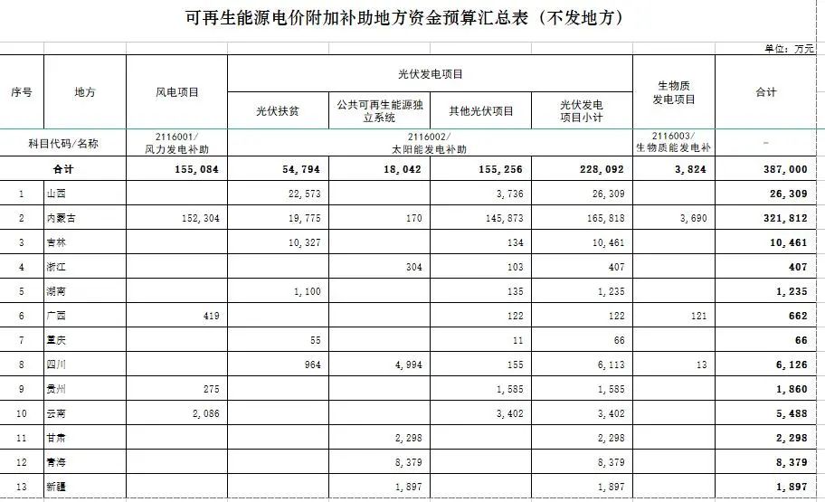 本次下達總計新能源補貼資金38.7億元。其中,風電15.5億元、光伏22.8億元、生物質3824萬元。